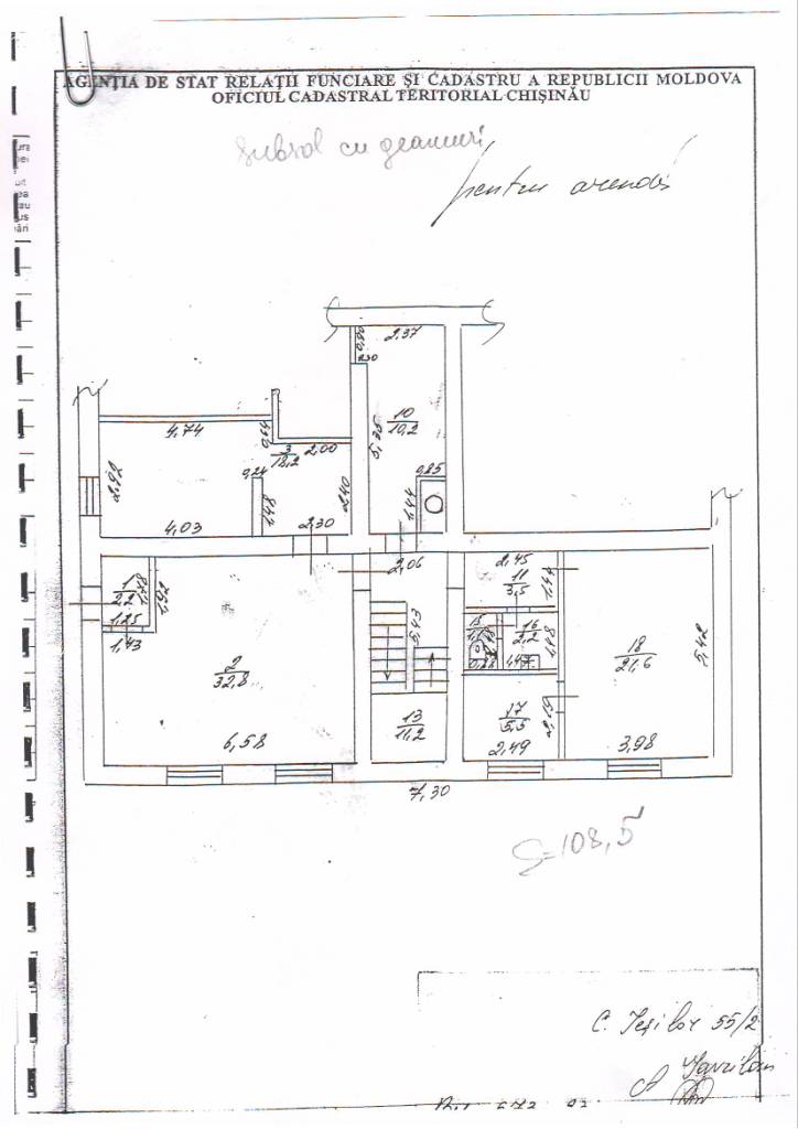 Descrierea Lotul: 17-î Locaţie: mun. Chişinău Sectorul: Buiucani Adresa: str. Calea Ieșilor, 55/2 Tipuul: subsol cu geamuri Cuantumul estimat al chiriei anuale: 126 302 lei Termenul de locațiune: 5 ani Preţul iniţial de expunere la licitaţie: 350 000 lei