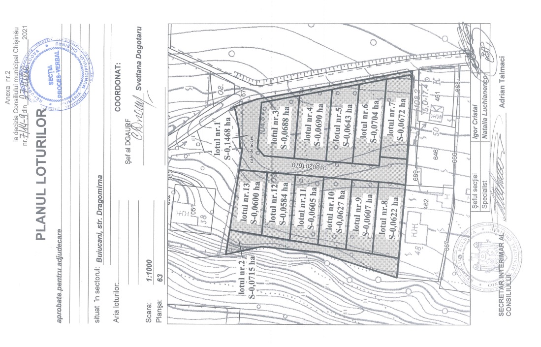 Descrierea Lotul: 5-V Locaţie: mun. Chişinău Sectorul: Buiucani Adresa: str. Dragomirna nr. cadastral: 0100201.1018 Destinație: Construcție locativă (zona R3-a) Prețul inițial: 500 000 lei Suprafața: 0,0704 ha