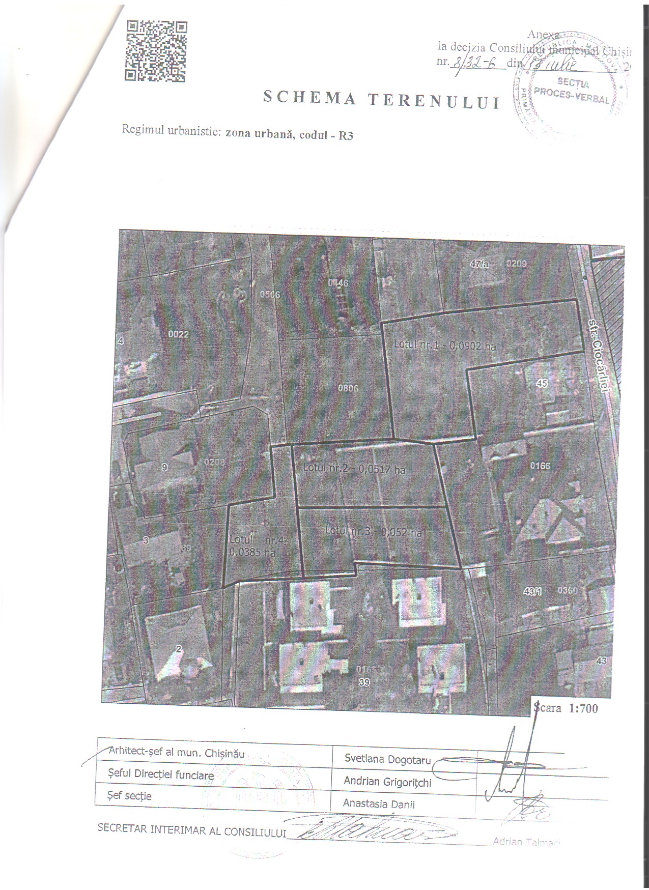 Описание Лот: 3-V Расположение: мун. Кишинёв Район: Центр Адрес: ул. Никита Смокинэ кадастровый номер: 0100216.1017 Назначение: Жилое строение, зона R3 Площадь: 0,0520 га Первоначальная цена: 1 500 000 лей