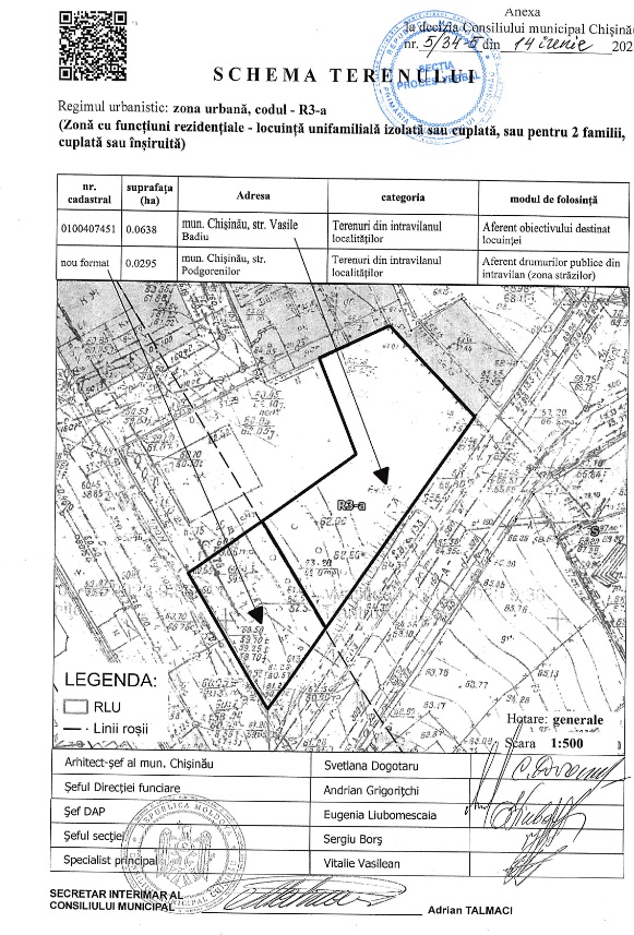 Описание Лот: 13-V Расположение: мун. Кишинёв Район: Рышкань Адрес: ул. В. Бадиу, кадастровый номер: 0100407.451 Назначение: Объект совместимый с зоной R3–a Площадь: 0,0638 га. Первоначальная цена: 800 000 лей