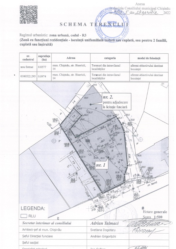 Описание Лот: 22-V Расположение: мун. Кишинёв Район: Буюканы Адрес: ул. Бисеричий кадастровый номер: 0100522.794 Назначение: Объект совместимый с зоной R3 Площадь: 0,0377 га. Первоначальная цена: 400 000 лей