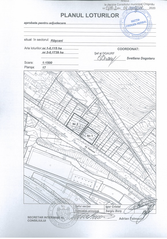 Описание Лот: 18-V Расположение: мун. Кишинёв Район: Рышкань Адрес: ул. Петрикань кадастровый номер: 0100402.572 Назначение: Объект согласующийся с нормами местного градостроительного регламента, зона С7 Площадь: 0,1150 Га. Первоначальная цена: 1 500 000 лей